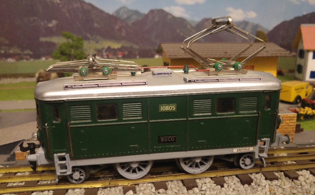 Ci-dessus, vue de l’une des deux parois latérales de mon « Ae 4/6 » 10805 (modèle BUCO 314 L) avec plaque de dépôt d’ERSTFELD et, ci-dessous, ma 10811 (également modèle BUCO 314 L) avec plaque de dépôt de BELLINZONA