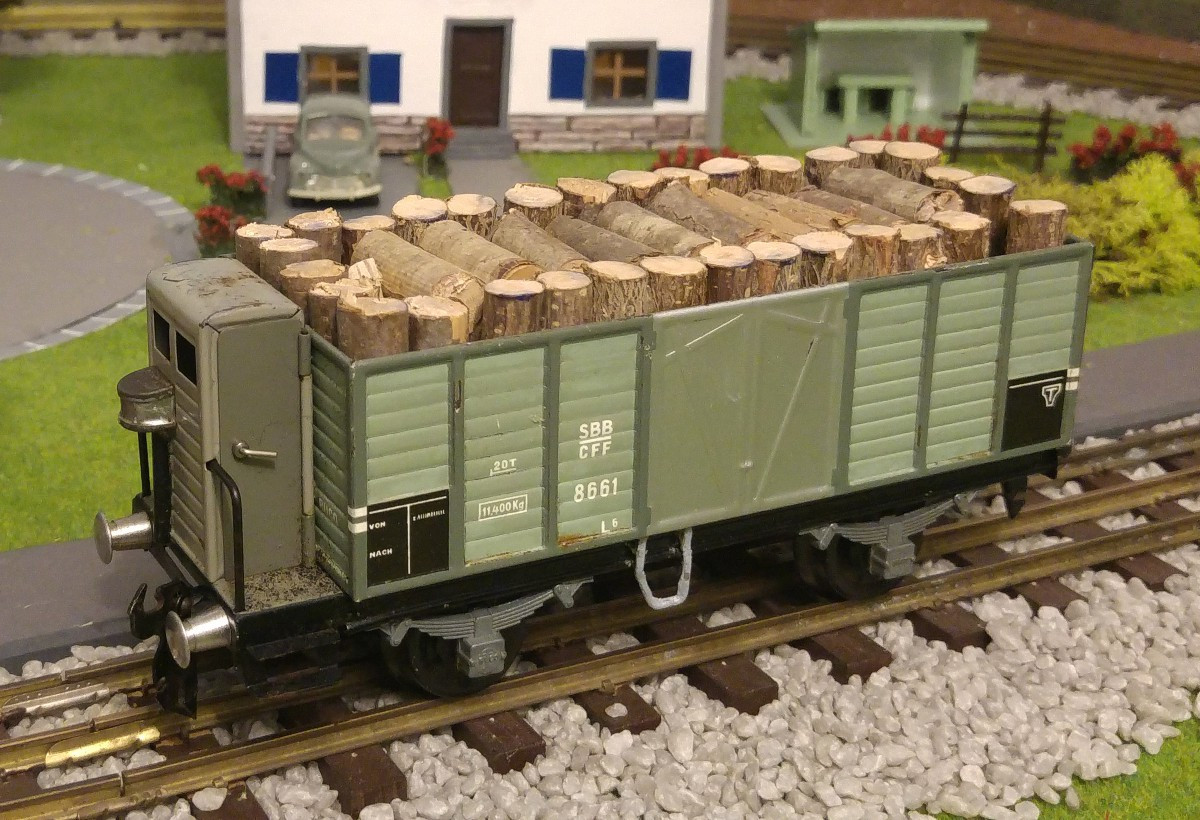 Ce modèle de wagon représente l’aspect des L6, dont leur vigie originale classique a été progressivement supprimée avec le temps et remplacée par une plateforme ordinaire avec manivelle de frein visible; ce wagon n’a par contre jamais été produit par BUCO sous cette forme; il est chargé de bois de râperie.