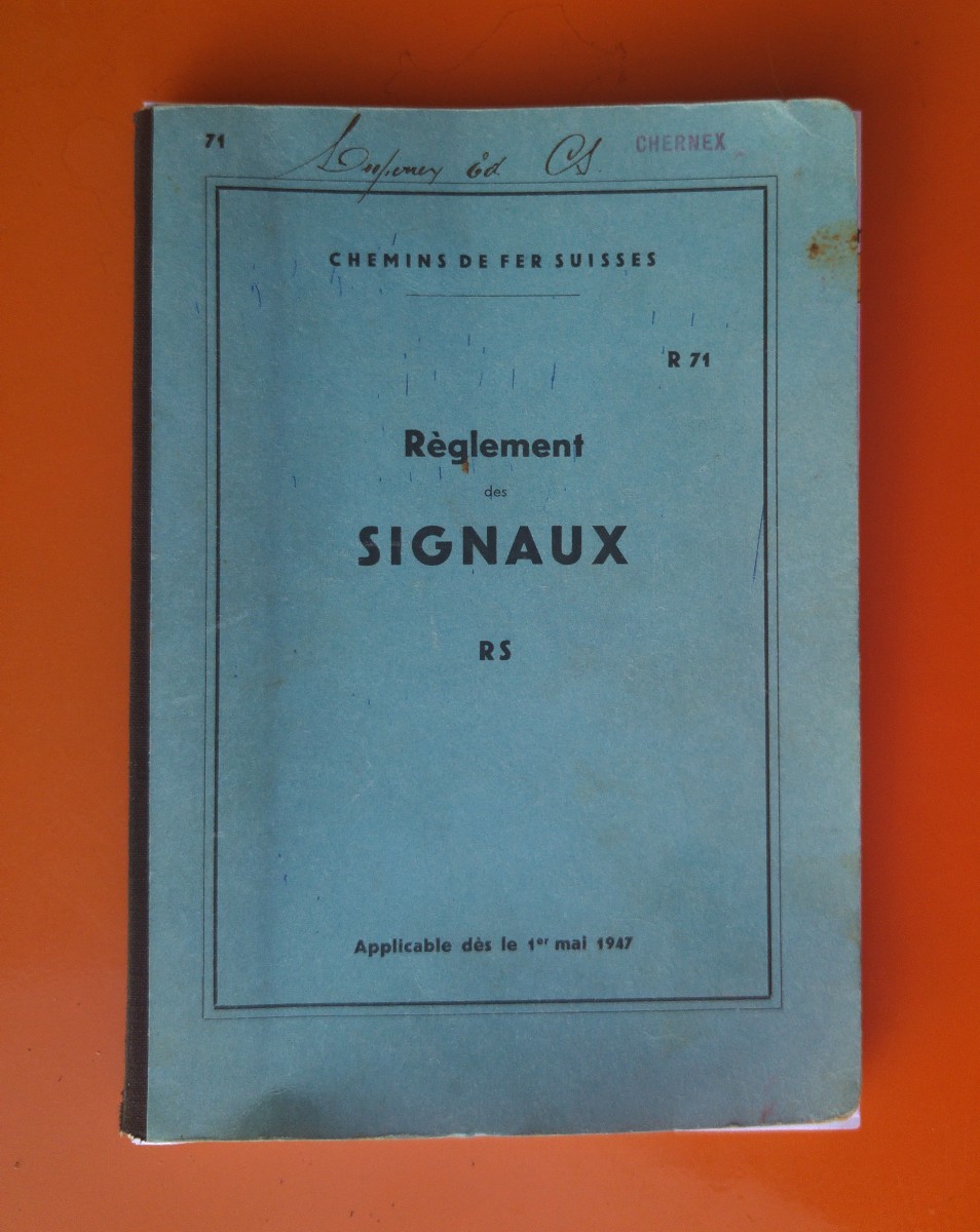 De gauche à droite, page de couverture du Règlement R 71 du 1er mai 1947 et, à droite, la figure No 44 parue à la page 27 de ce même Règlement et qui constitue la base pour la réalisation des signaux de queue “de jour” pour le matériel roulant Tinplate 0, que ce soient les véhicules-moteurs, les voitures voyageurs, les wagons-fourgons ou les wagons de marchandises